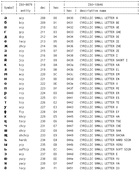 Таблица 2. Строчные буквы ISO-8859-5